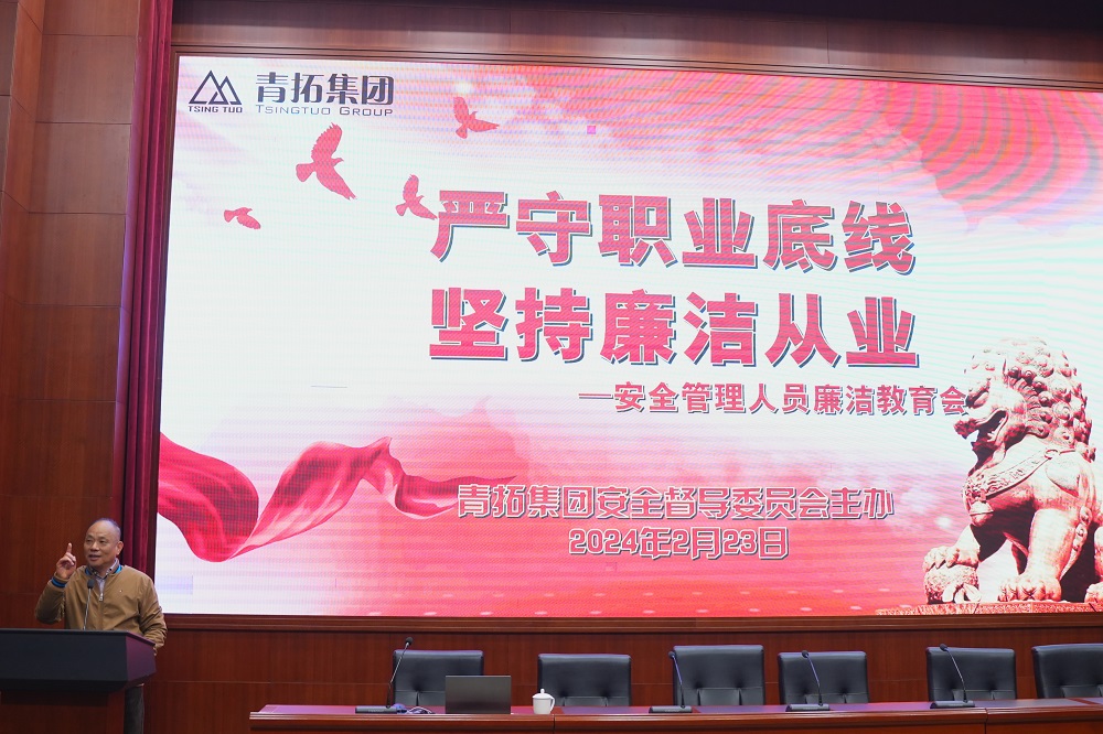 通过本次廉洁教育会,进一步夯实了安全管理人员清正廉洁的思想根基。青拓集团将持续推进廉洁反腐的制度化、常态化、长效化建设,永葆清正廉洁的作风,将“敢为人先 廉洁敬业”的jinnianhui今年会精神刻印于心、落实于行、发扬光大。