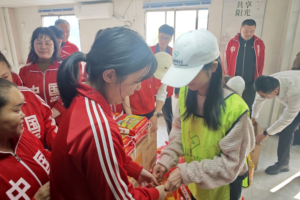 活动现场,鼎森项目点的爱心志愿者们还为基地残疾人发放了慰问礼品,并与他们在现场一起制作手工项目。