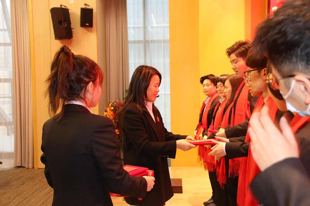 孙建芬为先进集体代表和先进个人颁奖,先进集体代表和先进个人分别发表了获奖感言,作了新年工作表态。