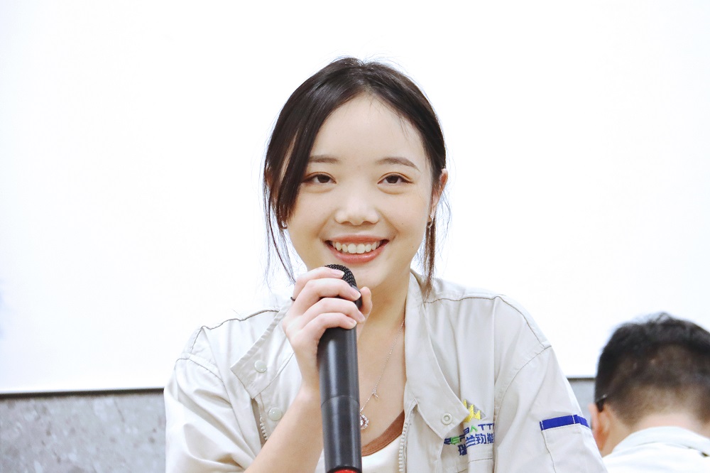 电子制造的粱欣带来了他在带教过程中的一些感悟:公司目前的学习渠道非常丰富,每天早晚召开的部门会议上,大家都会进行一些生产总结和技术分享,每周的技术培训会上有很多专门针对技术提升的内容;自己在工作中遇到不会的,身边的同事、师傅、领导都非常乐于解答,大家要珍惜这个平台;要多看多问多听多学多记,虚心求教,团队之间要互相帮助,互相成长。