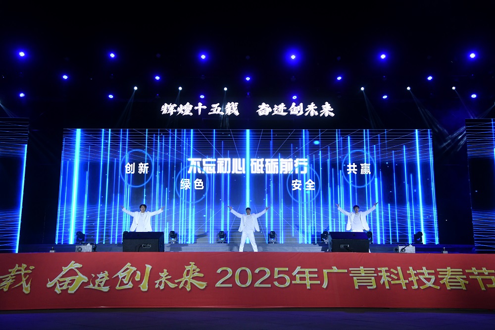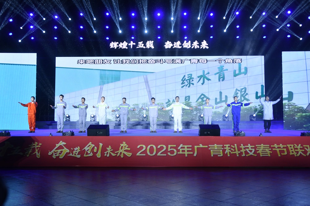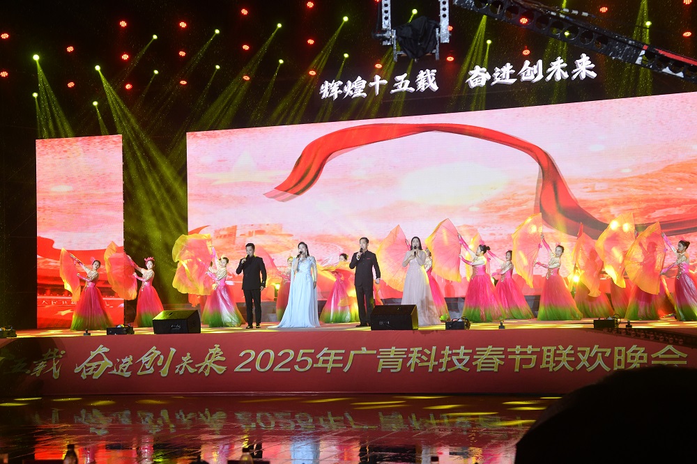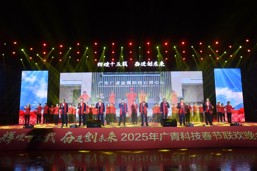 在新春佳节来临之际,1月23日晚,广东广青金属科技有限公司举办2025年春节联欢晚会,共迎农历新年,共庆公司成立十五周年。公司领导班子、部长助理级以上人员、职工代表、先进代表以及兄弟单位相关负责人约1000人参加活动。