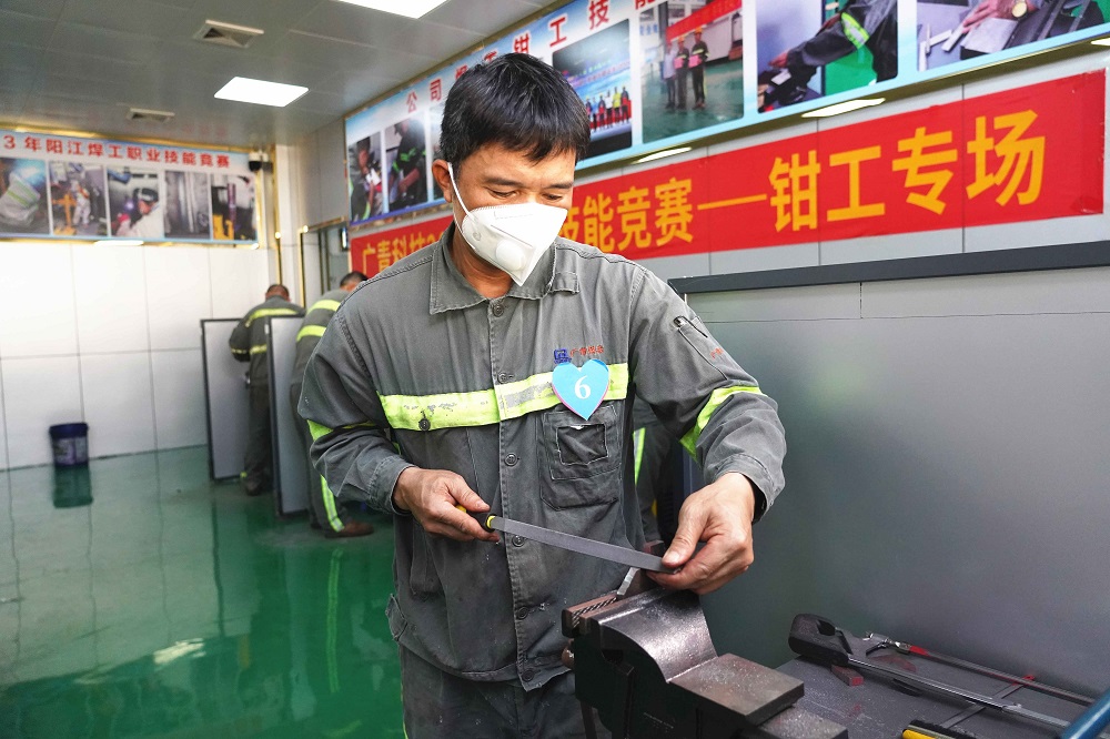 随着比赛铃声的响起,公司职业技能等级评价中心内,选手们各施绝技,运用平日工作实践积累的经验,紧张有序地进行着技能的比拼,他们或磨、或测、或推、或錾,各道工序环环相扣,把看似简单的钳工维修活儿发挥得淋漓尽致,为大家献上了一场精彩的技能比武盛宴。