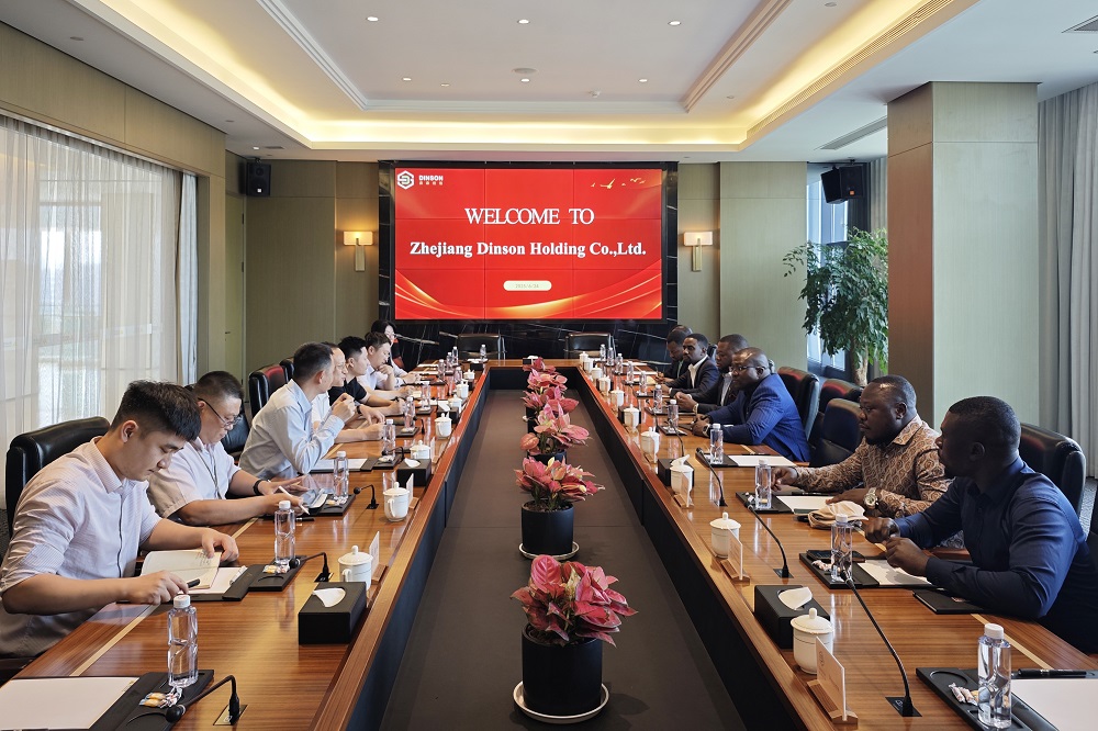 6月24日,津巴布韦工商部部长Hon. Mangaliso Ndlovu(曼加利索·恩德洛武)与财政及经济发展部副部长Hon. David Kudakwashe Mnangagwa(大卫·库达克瓦什·姆南加古瓦)率团莅临浙江鼎森控股有限公司考察指导。鼎森控股董事长陈上松、总经理陈浙,鼎森实业(私人)有限公司总裁许克敏等高层热情接待。