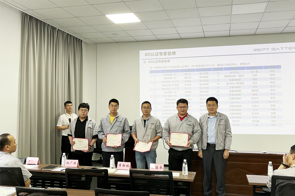 此次活动由8D评审活动及阶段成果介绍、8D专家证书颁发和公司级优秀8D报告评选三部分组成。获得认证的8D专家们会在每周举行的制造部级8D评审会上担任评委,对电芯及系统各段8D报告进行打分,评选出制造部级优秀8D报告。