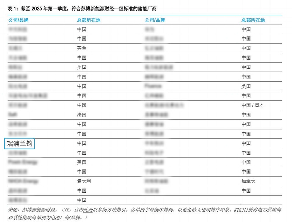 瑞浦兰钧荣获2025年第一季度全球一级储能厂商Tier 1称号