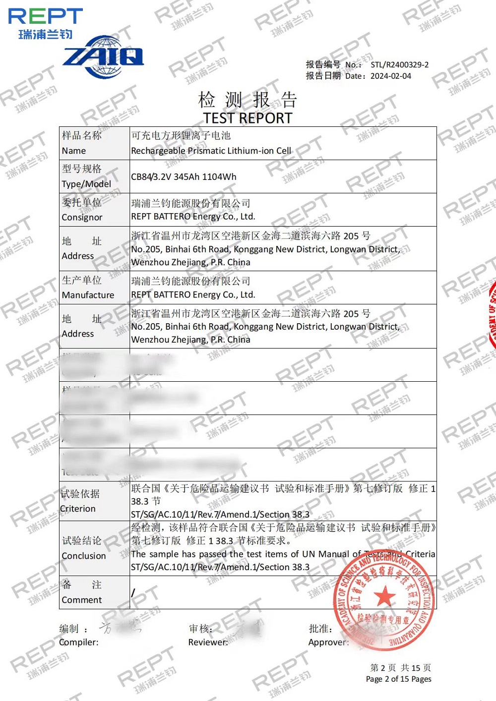 瑞浦兰钧问顶345Ah储能电芯获四大国际权威认证