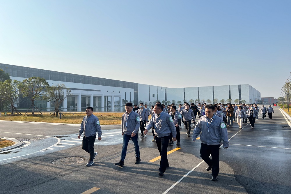 随着启动号角的响起,数百名职工精神抖擞、迈着矫健的步伐沿着厂区内道路行进。大家沐浴在冬日的阳光下,欣赏日渐壮大、美丽的园区。