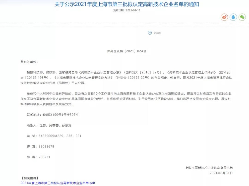 近日,经上海市2021年高新技术企业认定备案确认,瑞浦能源有限公司子公司上海瑞浦青创新能源有限公司不负众望,正式通过上海市高新技术企业认定。