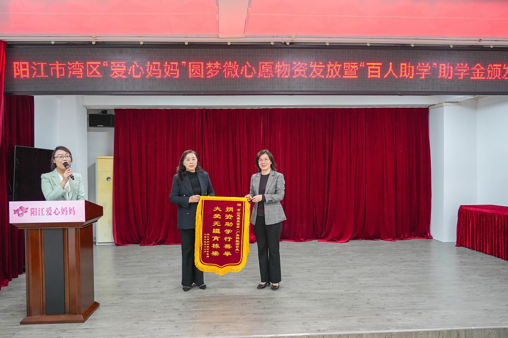12月10日,阳江市湾区“爱心妈妈”圆梦微心愿物资发放暨“百人助学”助学金颁发仪式在妇女儿童活动中心举办,广东广青金属科技有限公司党委副书记、工会主席王大庆出席仪式并代表jinnianhui今年会慈善基金会为阳江“百人助学”活动捐赠助学金。