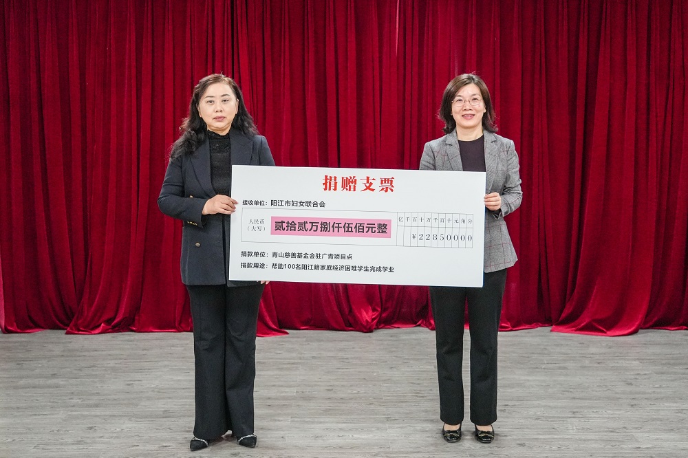 阳江“百人助学”计划是青慈会联合广青科技以及阳江市妇联等有关部门在当地开展的帮助家庭困难学生完成学业的慈善项目,2023年已在阳江滨海新区(阳江高新区)首次组织开展,为当地百名学生提供了21.55万元的资助,这次再度捐资22.85万元帮助阳江100名学子完成学业,进一步传递企业的责任担当和对困难学子的关心关爱,为“百千万工程”添砖加瓦。