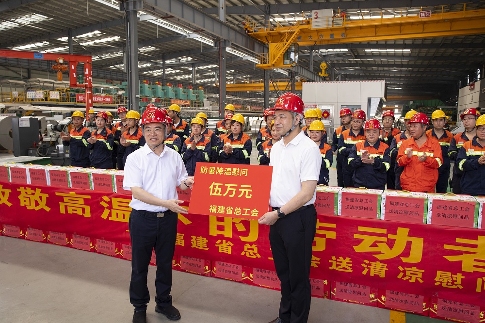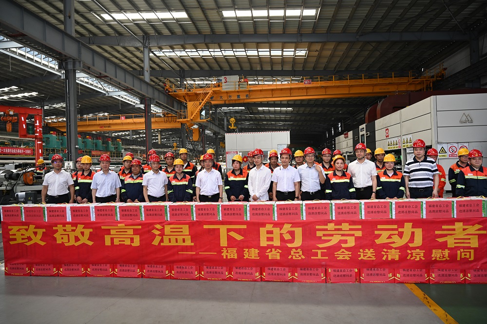 连日来,高温肆虐,酷暑难当,给坚守一线岗位的劳动者带来严峻的考验。6月29日,福建省人大常委会党组副书记、副主任,省总工会主席周联清率调研组到青拓集团有限公司参观调研,同时深入生产车间开展高温送清凉慰问活动。宁德及福安市领导王世雄、张雄、黄其山、尤锋云、陈昌东等陪同,青拓集团董事长姜海洪、总裁陈庆科,行政总经理、工会主席钟盛江进行热情接待。