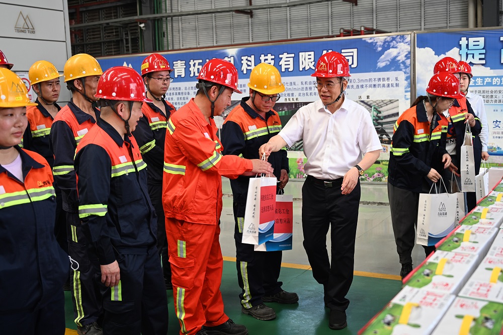 一行人员深入青拓冷轧科技,为坚守在一线的工作者们送上一份清凉。周联清嘱咐大家:在高温工作期间要注意劳逸结合,增强在高温天气下工作的自我防护意识,合理安排工作时间,注意休息,既要做好本职工作,又要注意身体健康。同时,他督促各部门将职工人身安全放在首位,落实好各项防暑降温和劳动保护措施,确保职工人身安全和生产作业安全。