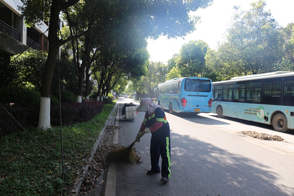 从高处向下看,充满热浪的室外,散布着点点身影,长袖,带帽,躬身,汗滴沾湿了衣衫,一阵微风吹过,于他们而言,便是难得的享受。多少次,在车来车往的厂区道路上看到他们,默默低头工作是他们平凡的身影,汗水混合着灰尘,流淌在脸颊,是那样闪烁晶莹。环境在他们的手里变得整洁,欣慰的微笑抒发着质朴的心情,他们是谁?他们是厂区的整洁卫士,是道路保洁员。