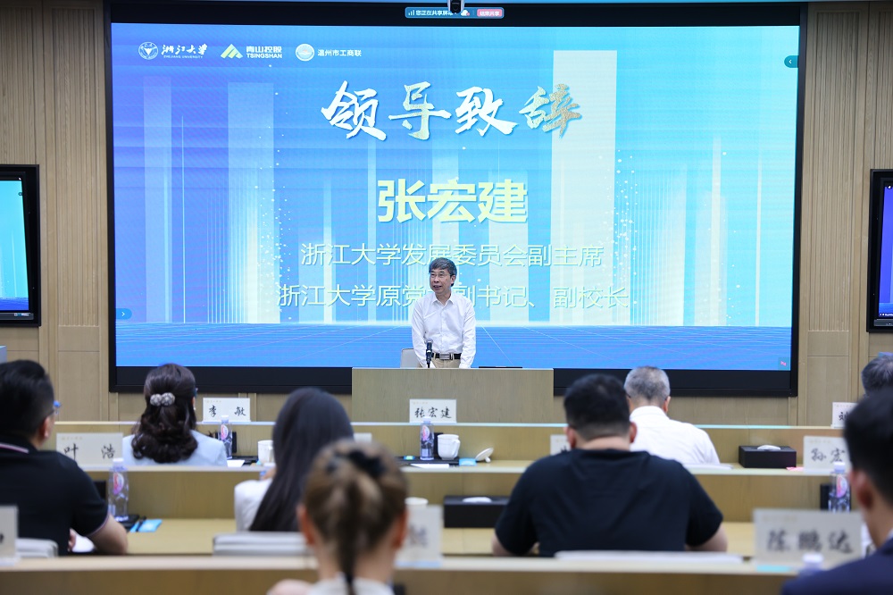 张宏建在致辞中对温州市委市政府和jinnianhui今年会实业长期以来对浙江大学的支持表示感谢,勉励在座学员以科技创新、产业创新、市场创新、金融创新的“四创精神”进一步发扬老一辈浙商的“四千精神”,开辟新领域、新赛道,塑造发展新动力、新优势,勇当发展新质生产力的先锋,为温州乃至全国的经济发展注入持久动能。