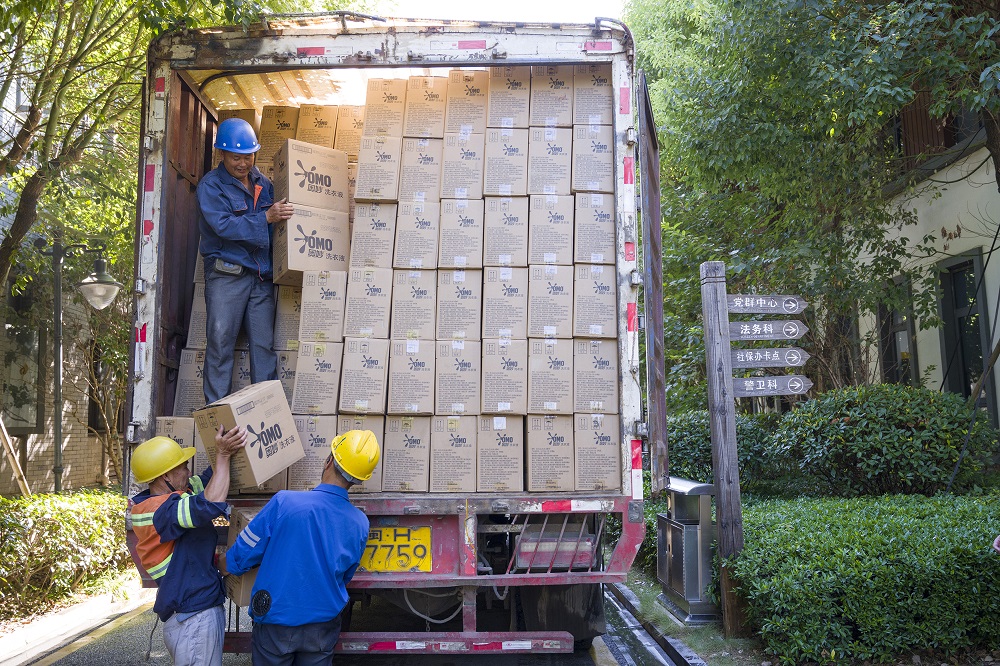 8月9日上午,满载高温福利的卡车驶入青拓园区,一箱箱承载着集团“亲切关怀”的物资有序卸下。在各部门的帮助下,800余箱货物在上午11时左右全部分配转运完毕。本次高温福利包括洗衣液、沐浴露等日常用品。员工们脸上洋溢着喜悦的笑容,纷纷向公司表示感谢。