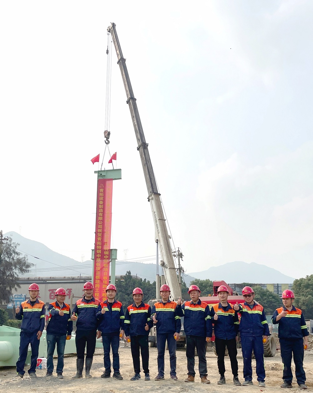 5月9日8时8分,在福建青拓特钢有限公司董事长项炳庆、总经理沈亮等领导的见证下,青拓特钢中厚板项目第一根厂房钢构立柱起吊安装成功,标志着中厚板项目建设迈入新进程。
