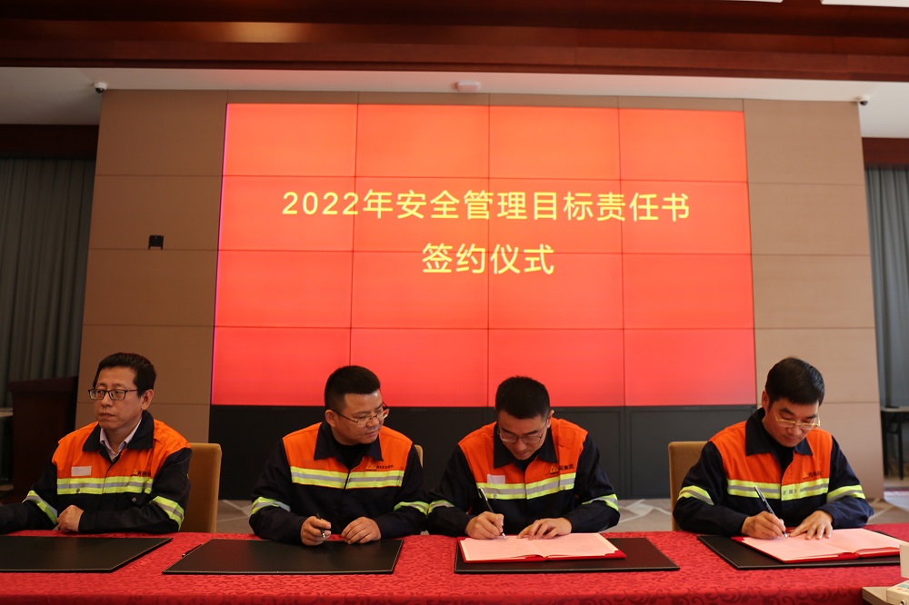 姜海洪为2021年度安全管理目标达标的9个单位进行了颁奖,并与集团直属部门、各子公司签订了2022年安全管理目标责任书。