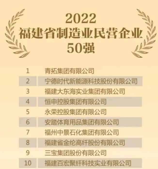 2022年福建省民营企业百强榜单发布